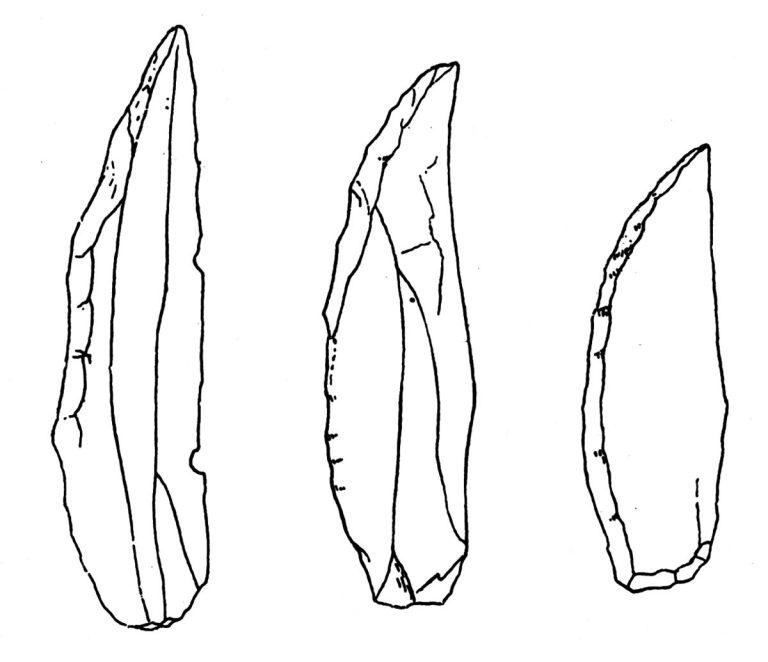 • Una de las características más prominentes es el uso de herramientas bifaciales, como raederas y puntas de flecha, que muestran un alto grado de habilidad en el retoque de bordes. Estas herramientas eran elaboradas mediante técnicas refinadas de percusión y presión, lo que permitía la creación de bordes afilados y formas simétricas. Este nivel de elaboración sugiere una mejora en las habilidades técnicas y una mayor planificación en la fabricación de herramientas en comparación con fases anteriores del Paleolítico.